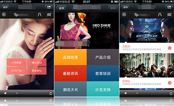 2、 微網(wǎng)站的建立,企業(yè)就不需要頻繁地在微信上發(fā)布產(chǎn)品信息,只需要通過網(wǎng)站對(duì)產(chǎn)品進(jìn)行更新就能讓用戶快速地了解到更全面的最新消息,企業(yè)展示產(chǎn)品的方式也更加自由和開放。同時(shí),微網(wǎng)站可建立各種交易模式,通過微網(wǎng)站讓交易途徑變得廣泛,解決客戶擔(dān)心的資金安全問題。