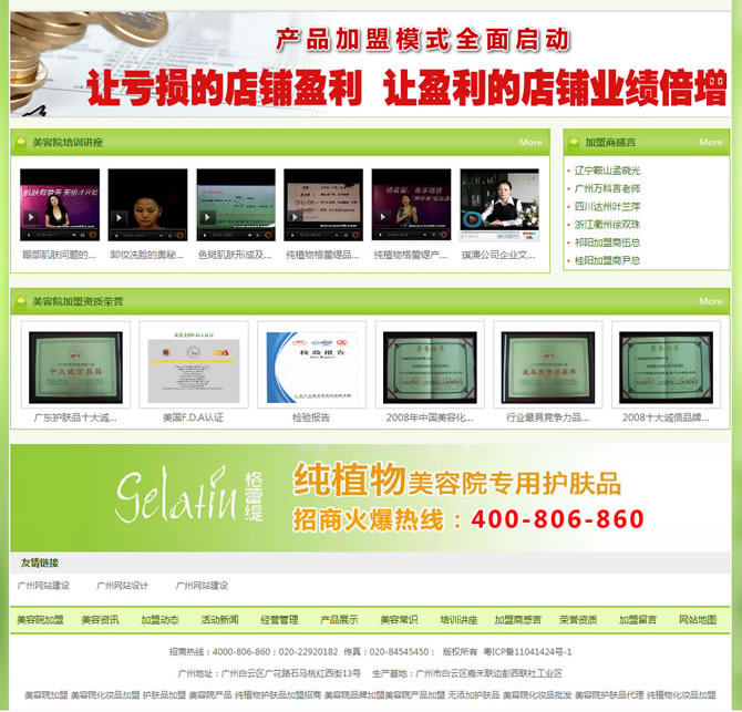 格蕾緹是以“安全、健康”為理念生產(chǎn)的無添加系列護(hù)膚品,是專業(yè)線美容院及醫(yī)療美容機(jī)構(gòu)專業(yè)品牌。廣州琪澳化妝品有限公司前身是廣州格潤化妝品有限公司,早在2008年,就在北京人民大會(huì)堂和北京釣魚臺(tái)國賓館獲得“2008年中國美容化妝品行業(yè)最具競爭力品牌”、“2008年中國美容化妝品十大誠信品牌”、“2008 年美容美發(fā)突出創(chuàng)新單位”等獎(jiǎng)項(xiàng)。